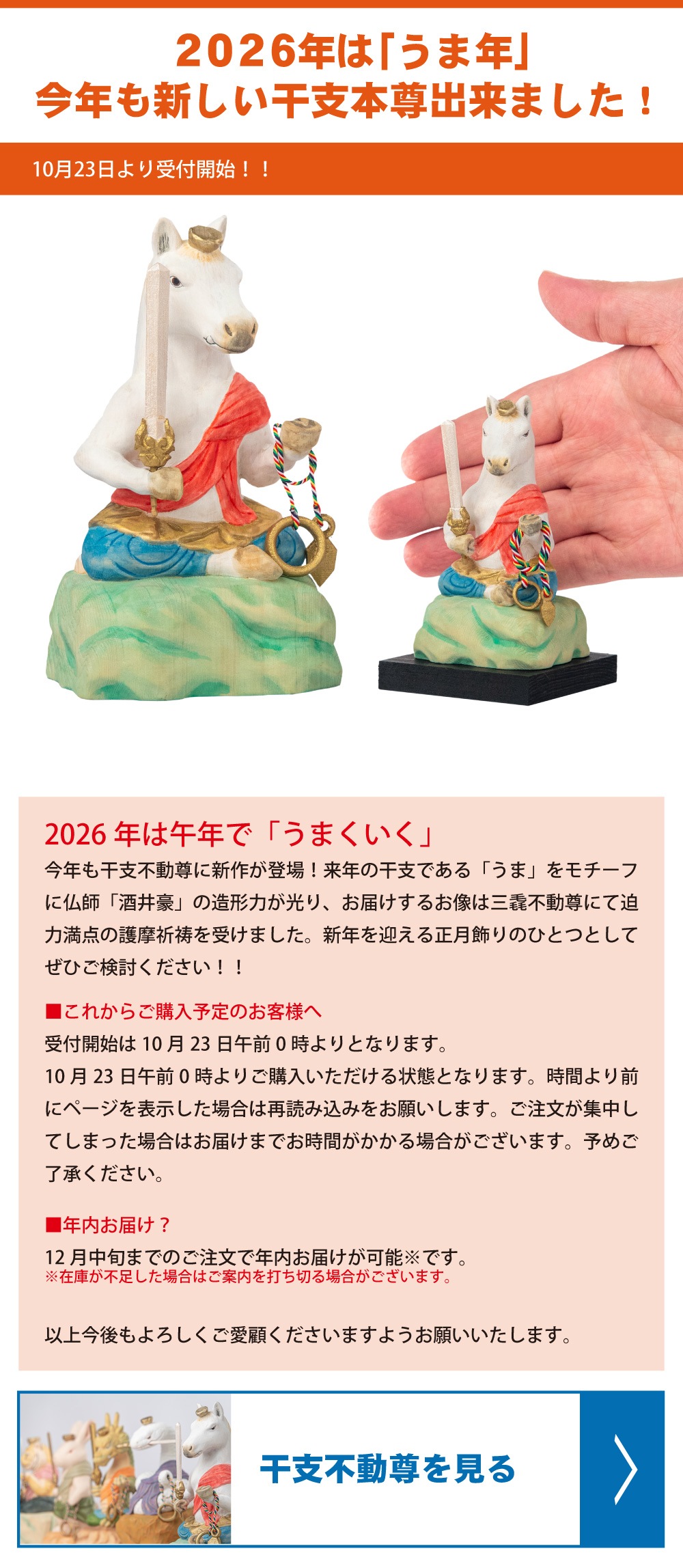 2025/10/16【新商品】来年の「うま」をモチーフにした午不動尊が登場!10月23日より受付開始!