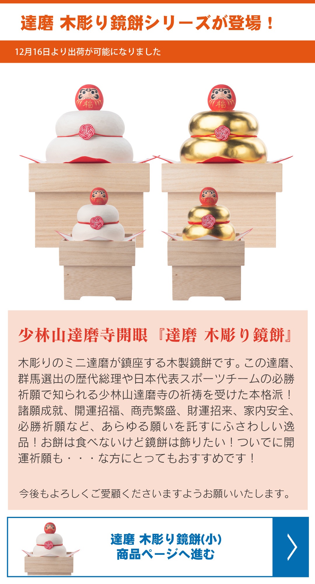 2025/12/16【新商品】達磨木彫り鏡餅シリーズが登場!