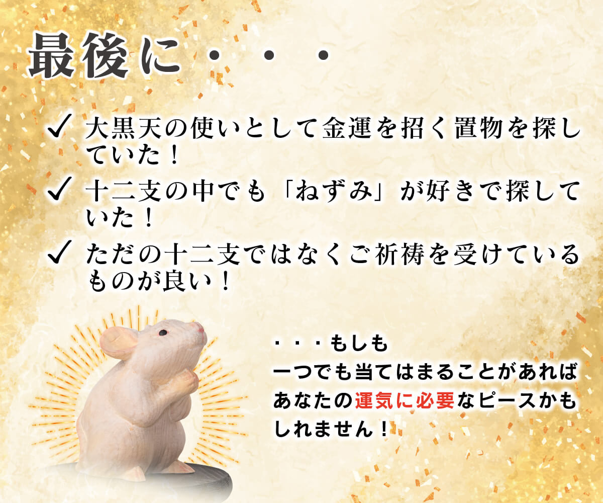 開運アイテム | 十二支木彫りコレクション「木彫りの子(ねずみ)」のご紹介