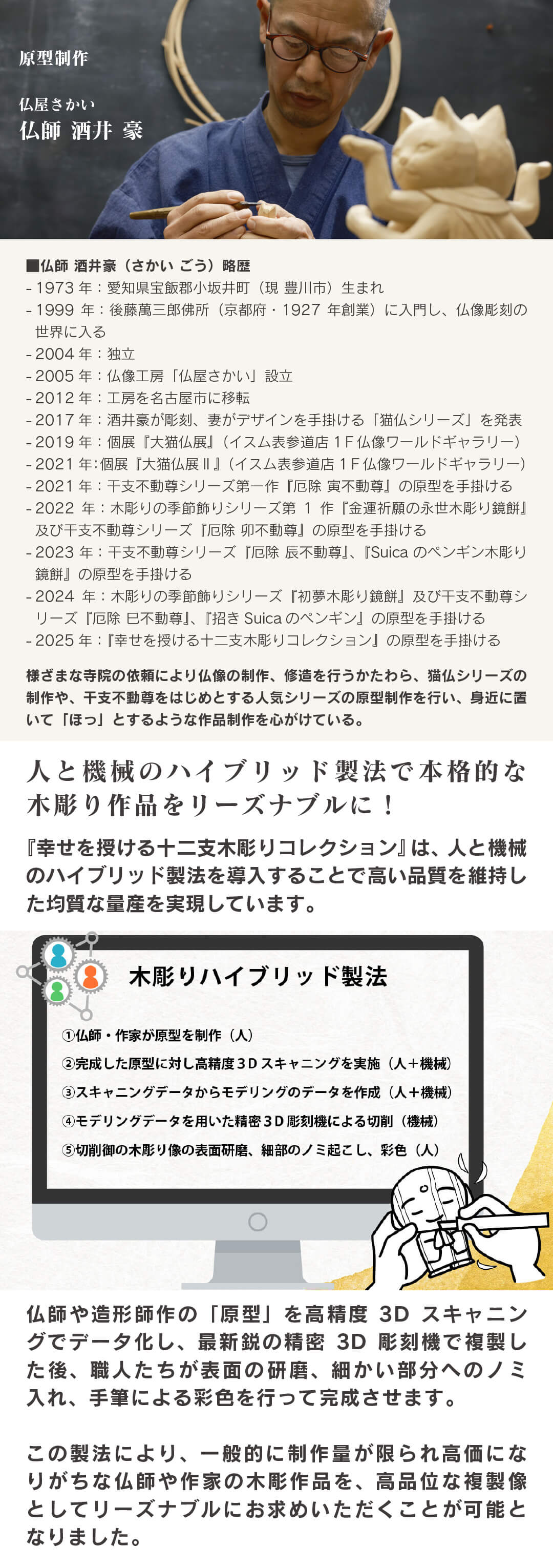 天然木を使用し、手作業で彩色を仕上げを施した木彫り製品です。木目ならびに彩色の個体差は選べません。製造上避けられない繊維の毛羽立ちや細かなキズがあります。開封直後は木の香りが強く感じられる場合があります。