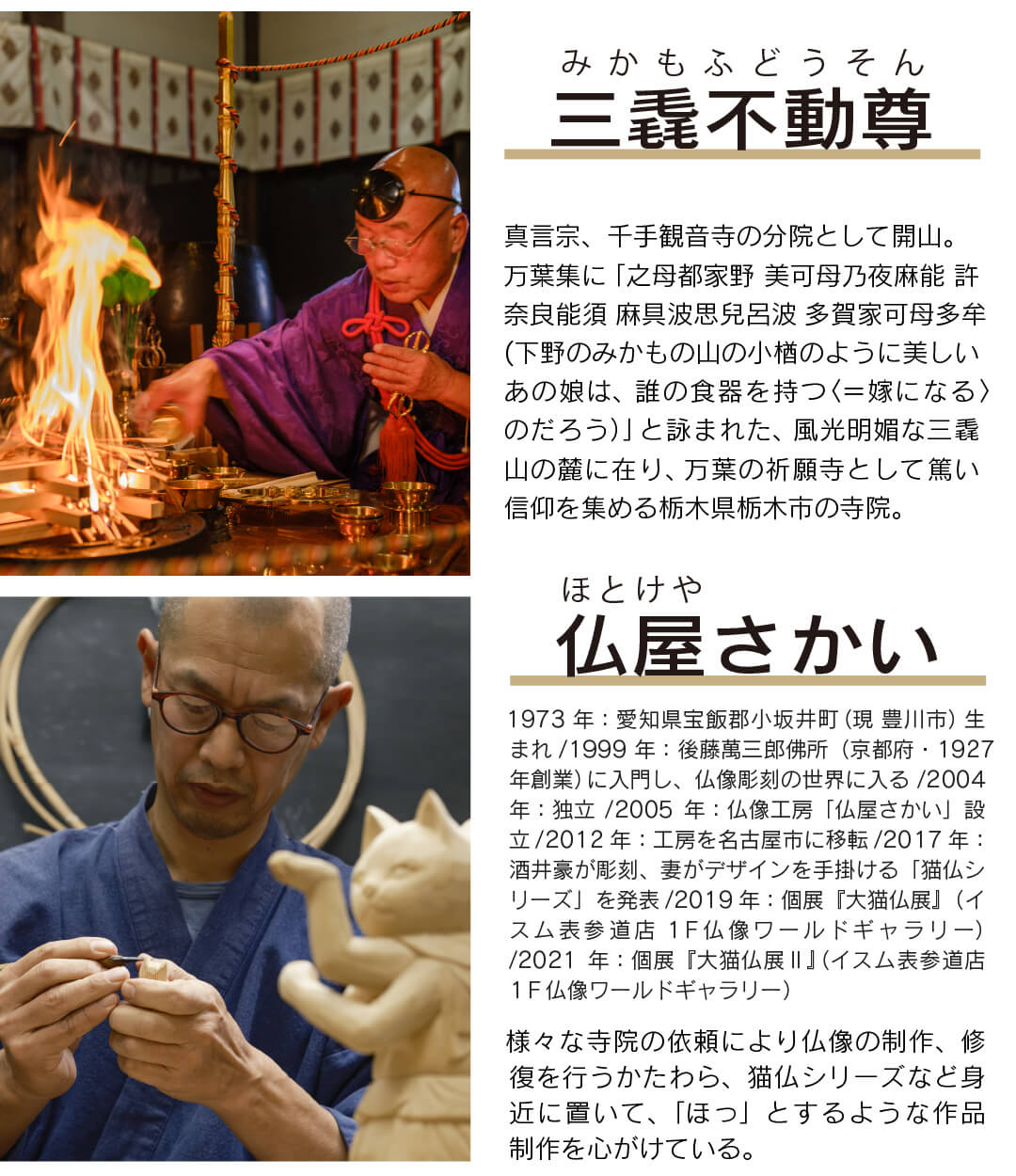 仏屋さかい 原型監修の可愛い猫の仏様(猫buddha)から派生した干支の不動明王シリーズ ※天然木・手仕上げの商品です。木目、彫刻、彩色には掲載画像とは異なる個性が出る場合があります。 木目などは選べません。予めご容赦ください。